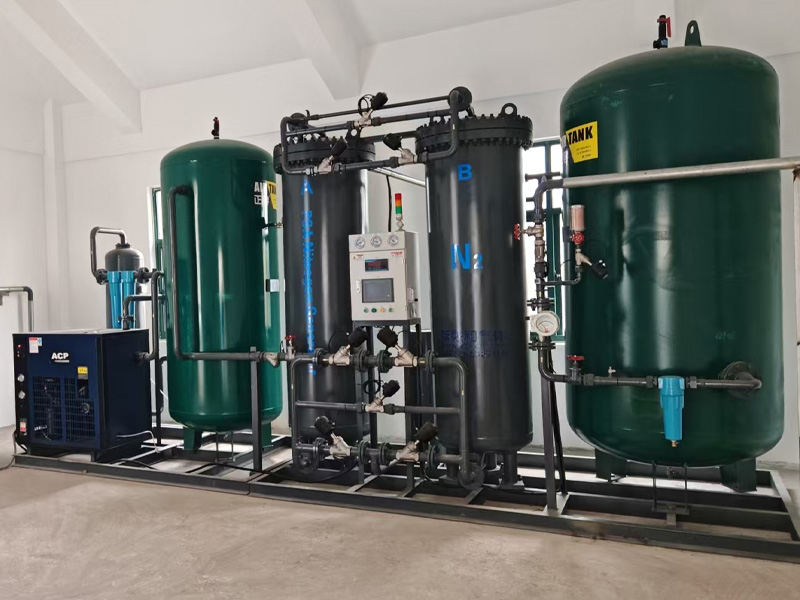 碳分子篩變壓吸附(Pressure Swing Adsorption,簡稱PSA)制氮裝置,是一種新型的空氣分離的高新技術設備,以壓縮空氣為原料,碳分子篩為吸附劑,采用變壓吸附流程制取氮氣。