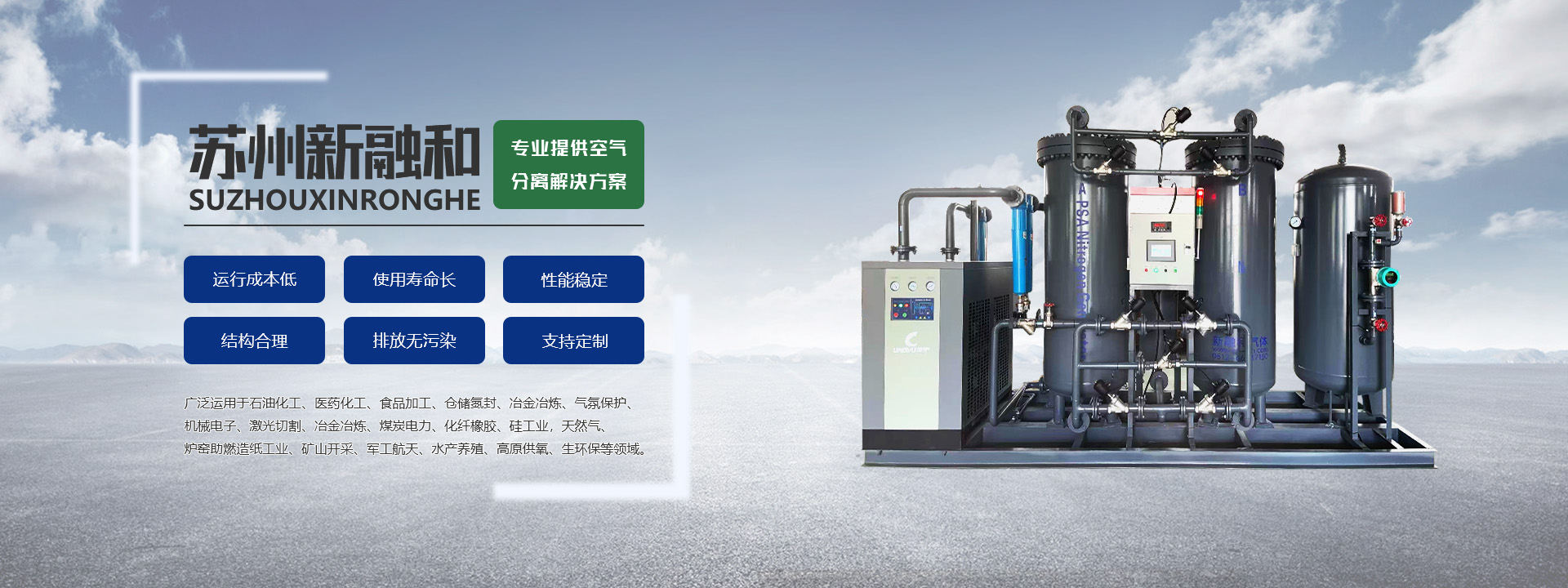 制氮機廠家蘇州新融和氣體設備有限公司為民營科技型股份制企業(yè),座落于風景秀麗的蘇州市相城區(qū),占地面積約6000㎡,擁有現(xiàn)代化的工業(yè)廠房3000㎡,商務智能化辦公場所1200㎡。